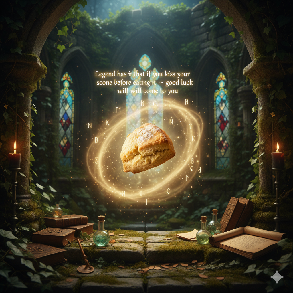 "Legend has it that if you kiss your scone before eating it ~ good luck will come to you”